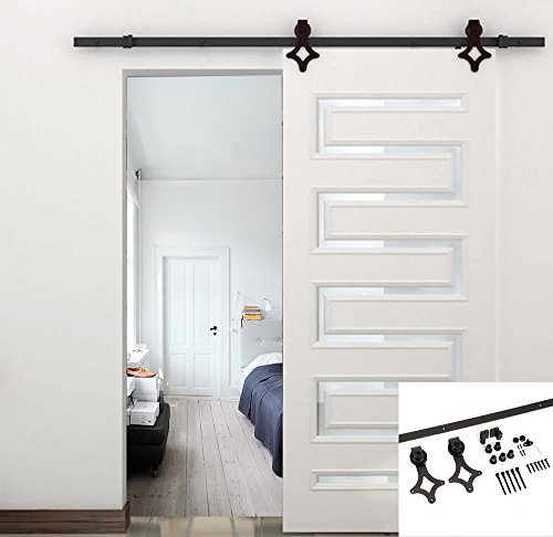 Feature: Uline American 6.6 Ft Sliding Wood Barn Door Hardware Sliding Track Kit Steel Rhombic Diamond Style Dark Brown